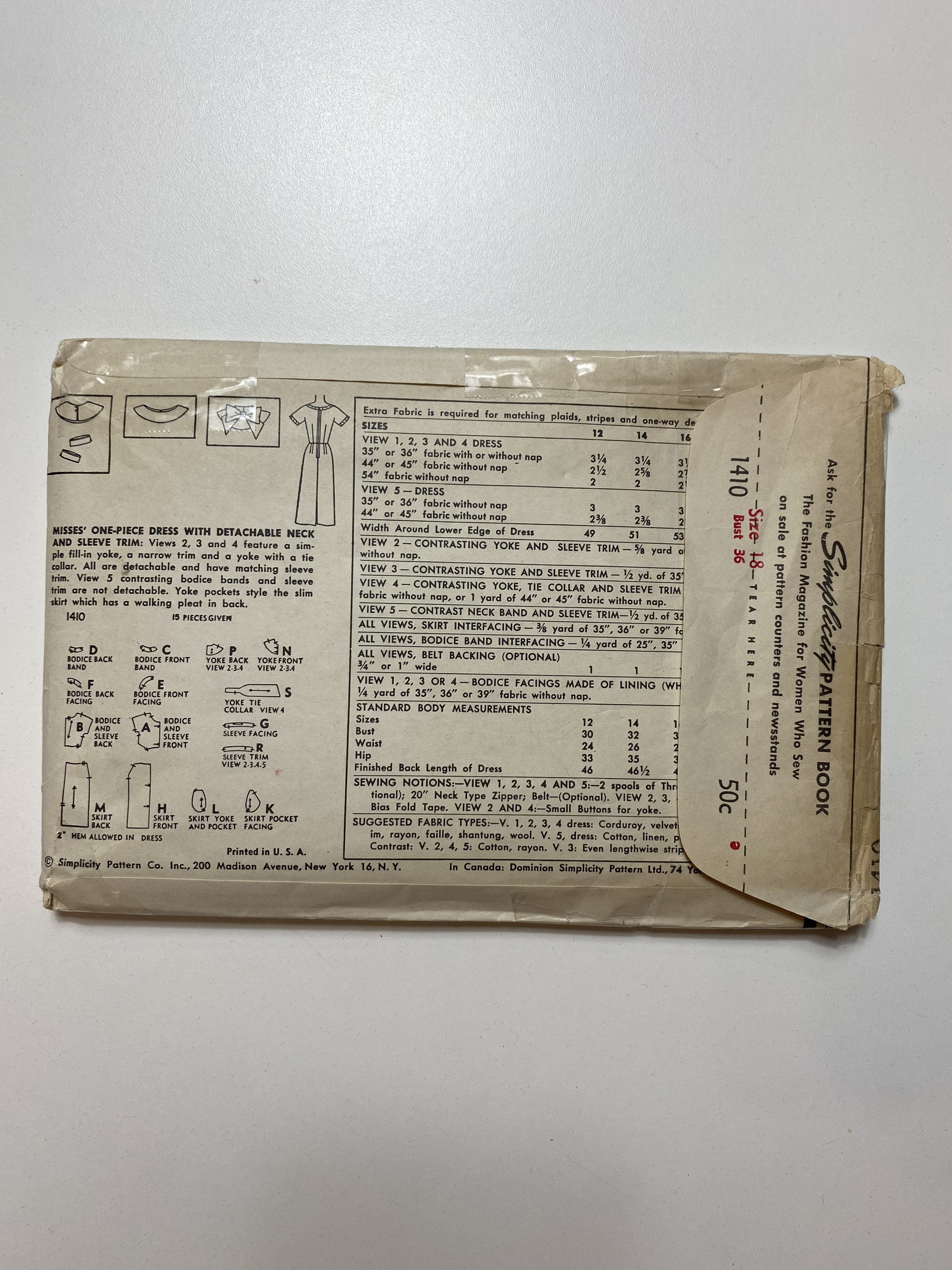 Vintage Simplicity Sewing Pattern No 1410 Size 18 Bust 36 Etsy