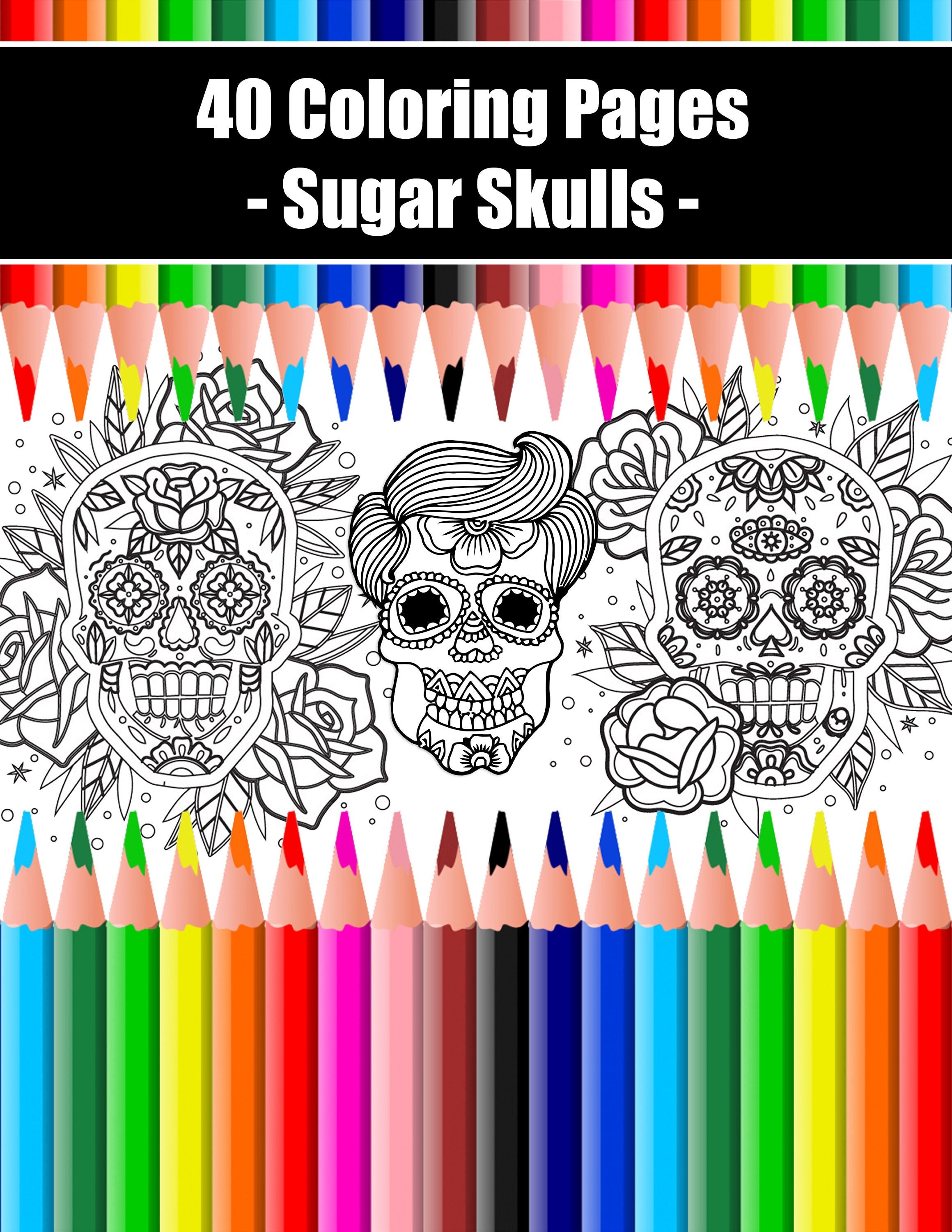 Coloring Pages Sugar Skulls 40 Pages Etsy